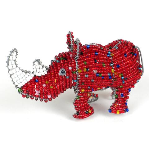 Handcrafted in South Africa, this striking beaded rhino showcases traditional artisanal techniques combined with contemporary design. Skilled artisans meticulously assemble quality glass beads onto galvanized wire to create a sculptural piece with authentic cultural heritage. The intricate beadwork captures the animal's distinctive form while offering dimensional texture and visual interest. Perfect for collectors of African art, home décor enthusiasts, or anyone seeking a meaningful, handmade accent that celebrates craftsmanship and cultural artistry.