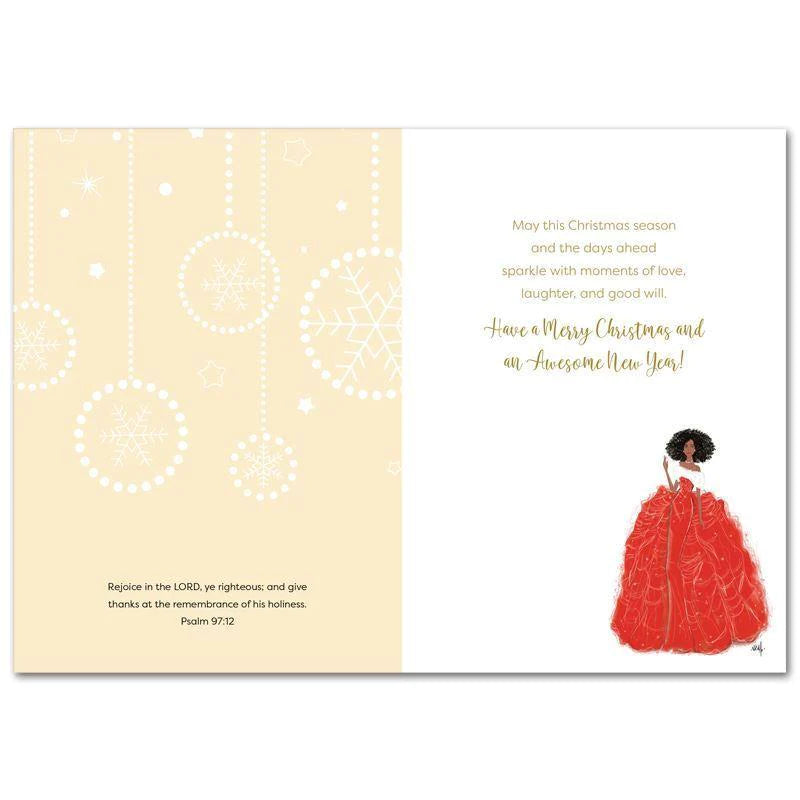 Size 5" x 7" / 15 embossed and foil-stamped Christmas cards per box with foil-lined envelopes and gold sealing sticker