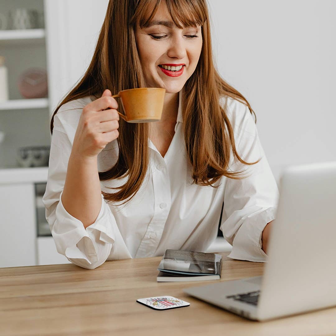 a great complement to any home décor. Soft coasters are 3.5" x 3.5", are absorbent, and can be washed. Ceramic coasters are 4.25" x 4.25", non absorbent and come with felt corner pads. Available in sets of 4 and 8.